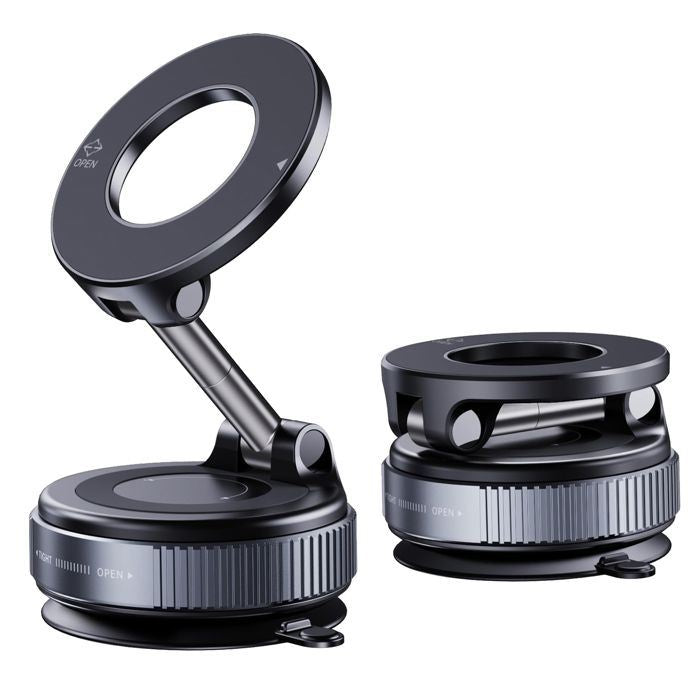 Découvrez le support magnétique d’aspiration sous vide : une double technologie qui combine la puissance d’une ventouse sous vide ultra-stable et la praticité d’un aimant haute performance.